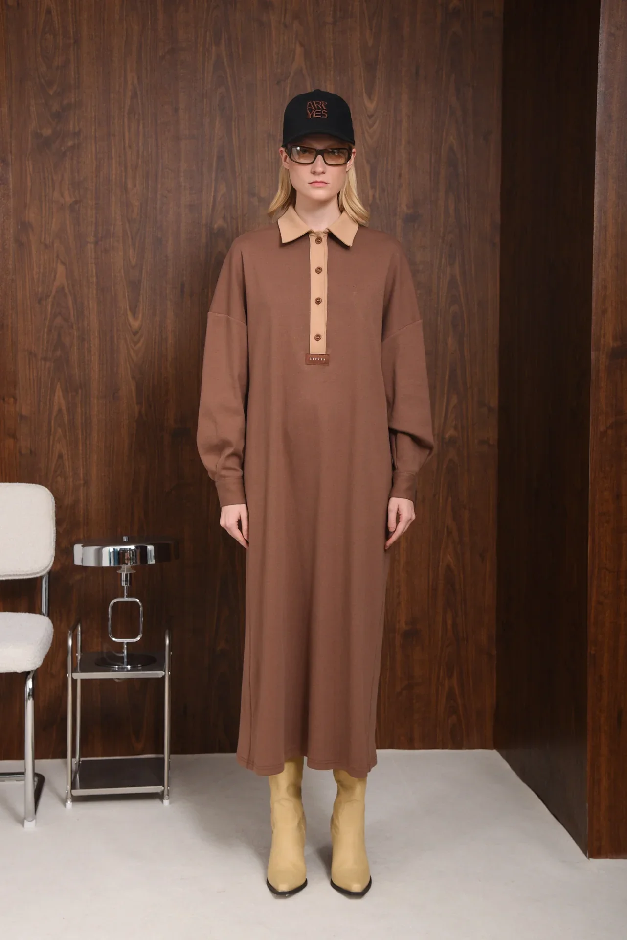 The Vanity maxi dress is crafted from soft viscose with a silky finish. It features a deep V-neckline, sleeveless cut, and a fitted waist accented with matte buttons. The back has a clean V-shape, while the long, flowing skirt falls gracefully for an elegant, fluid silhouette.